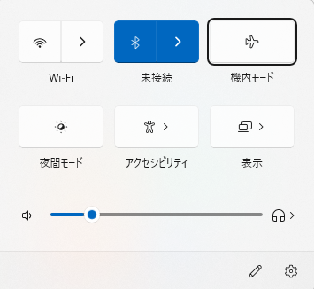 Wi-Fi ブルートゥース 機内モード 夜間モード アクセシビリティ 表示 音量