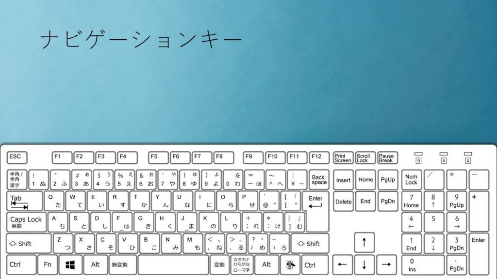 insertキーやHomeキー、PgUpキーや矢印を含めてナビゲーション(誘導・案内)する意味を持ちます。またキーボードによってはControlやFnキーを抱き合わせて使います。