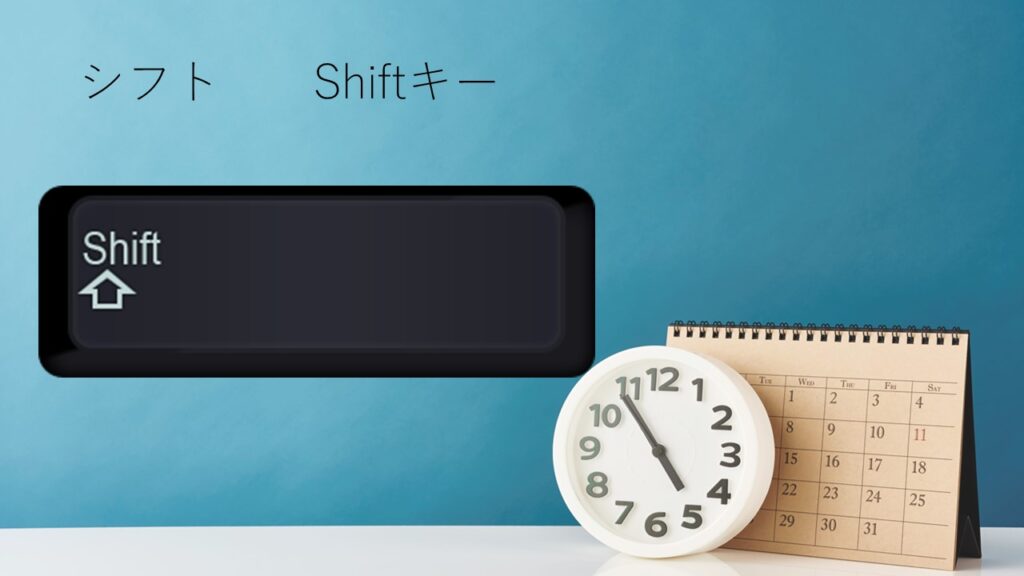 シフトは、「交代」を意味します。同じキーでも上の文字を入力する時には、シフトキーを押下することで上の文字を入力することが出来ます。まさしく交代という意味ですね。