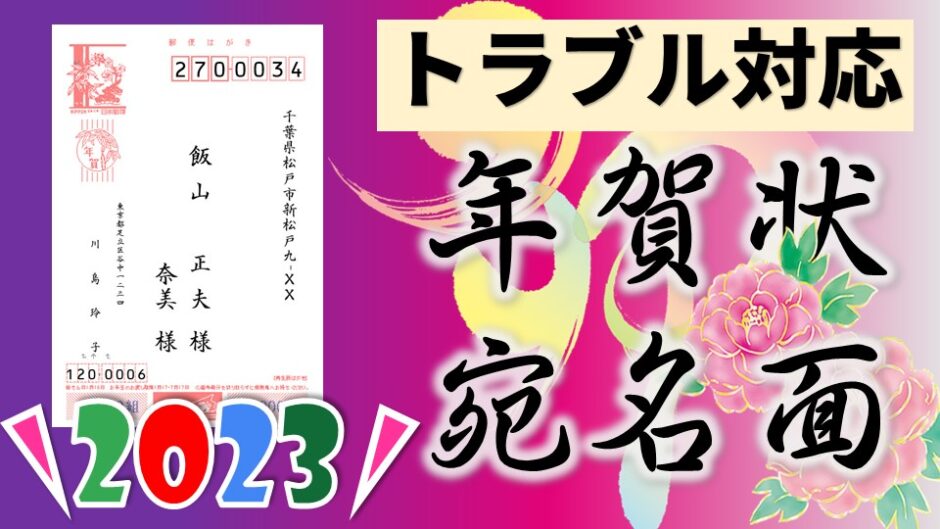 - 住所・・・マンション名でカタカナがある場合、全角にしましょう。全角にしないと縦文字にした際に横にひっくり返って表示されてしまいます。