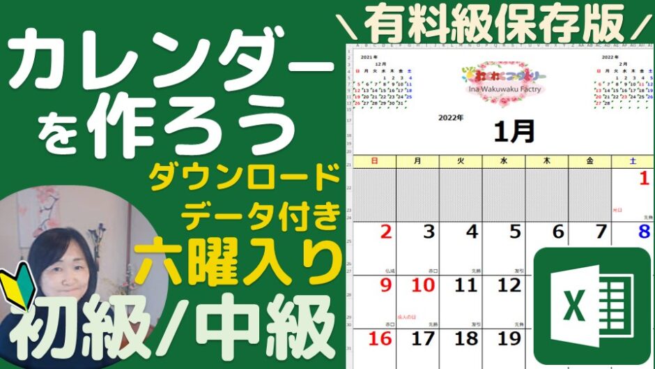 Excelでカレンダーはたくさんありますが、今回は六曜や祝祭日を入れて、年や月を入れると自動で3カ月(前月・次月)も更新するカレンダーを作成します。レベル別にしたいので、今回は前半に初級レベル後半に中級レベルに分けて動画を投稿致します。ダウンロードデータがございますので、初級は飛ばして関数から学びたいという方にも是非ご利用ください。