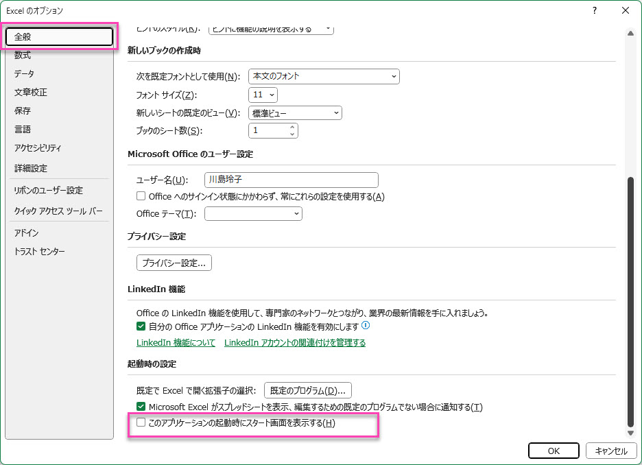 Excelのオプションは、たくさんの設定を変更することが出来ます。今回は開いた際に、ホーム画面ではなく「空白のブック」が表示されるように設定してみました。設定は元に戻すことができます。ただし、ご自身が設定したものは忘れないようにしましょうね。
