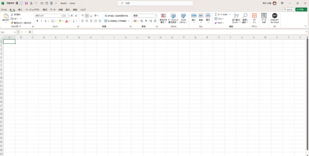 空白のブックをクリックし、はじめの白い画面を表示します。