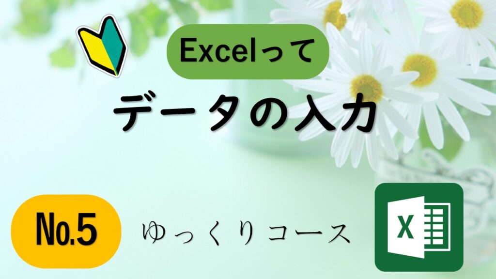 Excelでデータを入力してみましょう。文字・数字・日付・時刻など入力でどのようになるか基本をしっかり身に着けておきます。