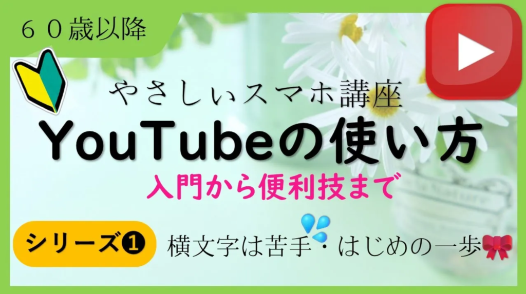 はじめてのスマートフォンとしてログインって何かよくわからない方あるいは、YouTubeの使い方を通してスマートフォンの使い方を習いたい方向けの講座です。