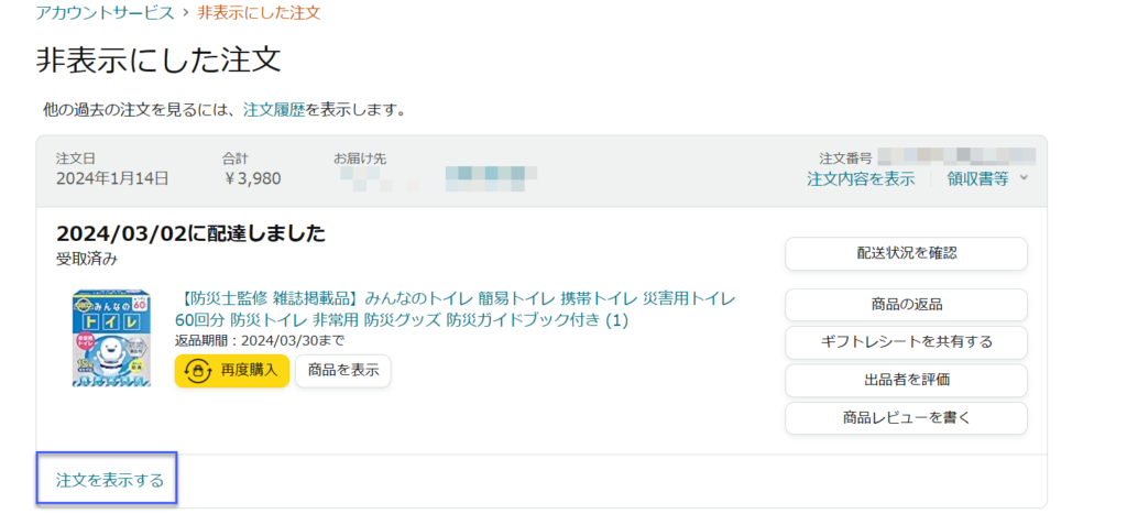 購入した履歴を非表示にする方法と非表示された商品があるか確認する方法をご紹介します。
