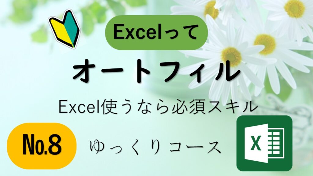 Excelを使う上でオートフィルはとっても重要なスキルです。これを知っていると知っていないとでは大きな差が出ます。せっかく便利な機能が盛り込んであるので、しっかり定着するように操作を覚えましょう。順番に覚えるゆっくりExcelの第8講座目となります。