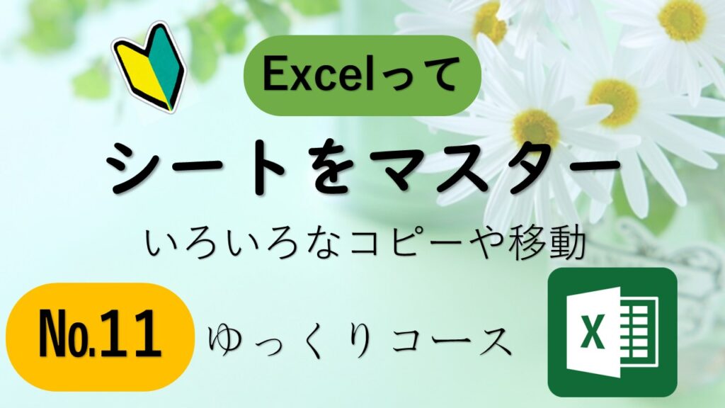 Excel初級。動画を観ながら表を作成しましょう。シート(sheet)の操作やデータのコピーなどを行います。練習問題はメンバーシップの方がご利用いただけます。ゆっくりコースの第11回目。