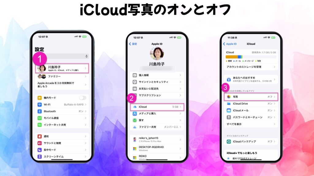 iCloudを使うことで、大切な写真やデータを安全に保管し、どこからでもアクセスできるので、とても便利です。これで、大切な思い出や情報をしっかり守ることができます。