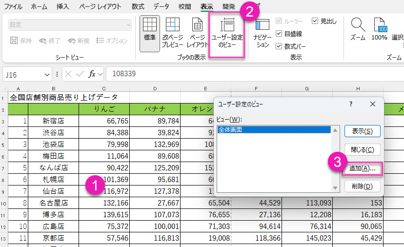 - 保存したビューは、いつでも切り替えて再表示させることができ、効率的な作業が可能です。