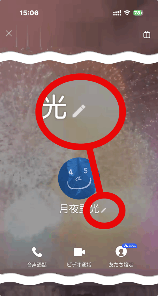 手順:友だちの名前(左上) → 鉛筆マーク → 名前を入力