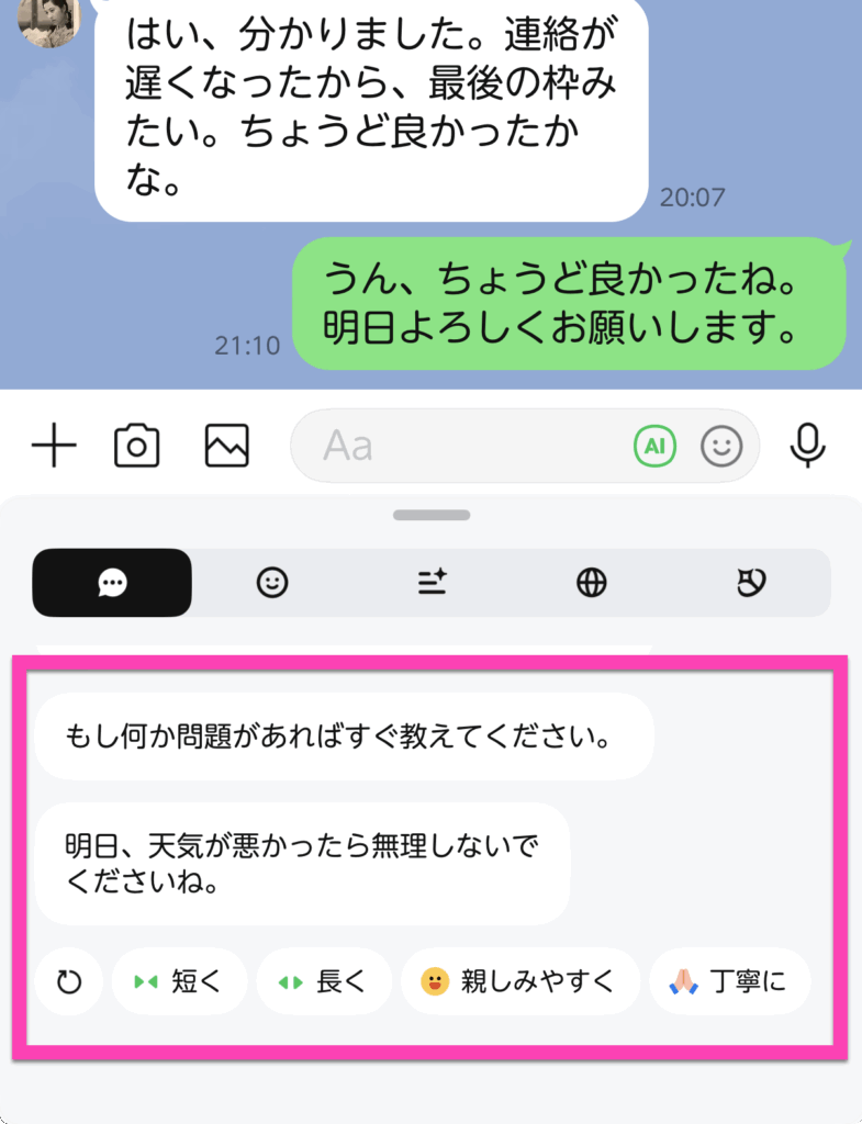 AIでメッセージもサポート!