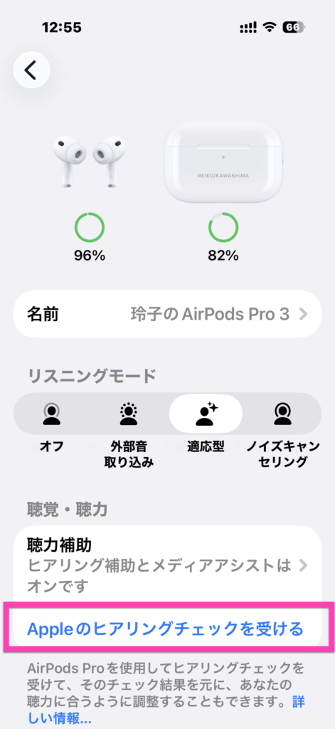 の4つのモードが用意されています。この3番目の「適応型」を選ぶと上部の画像にある適応型オーディオで設定されたモードになります。とてもわかりづらいので、ここはきちんとAppleに確認済みです。