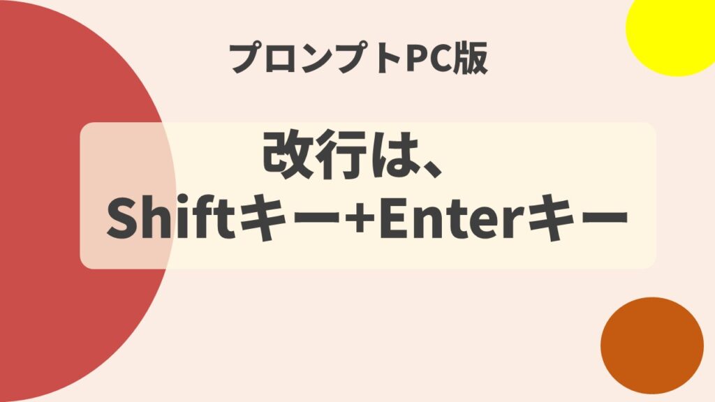 よく指示文を入れていて、確定したくてEnterキーを押下すると送信してしまうことがあります。改行したい場合には「Shiftキーを押しながらEnterキーを押下して行を変えます。