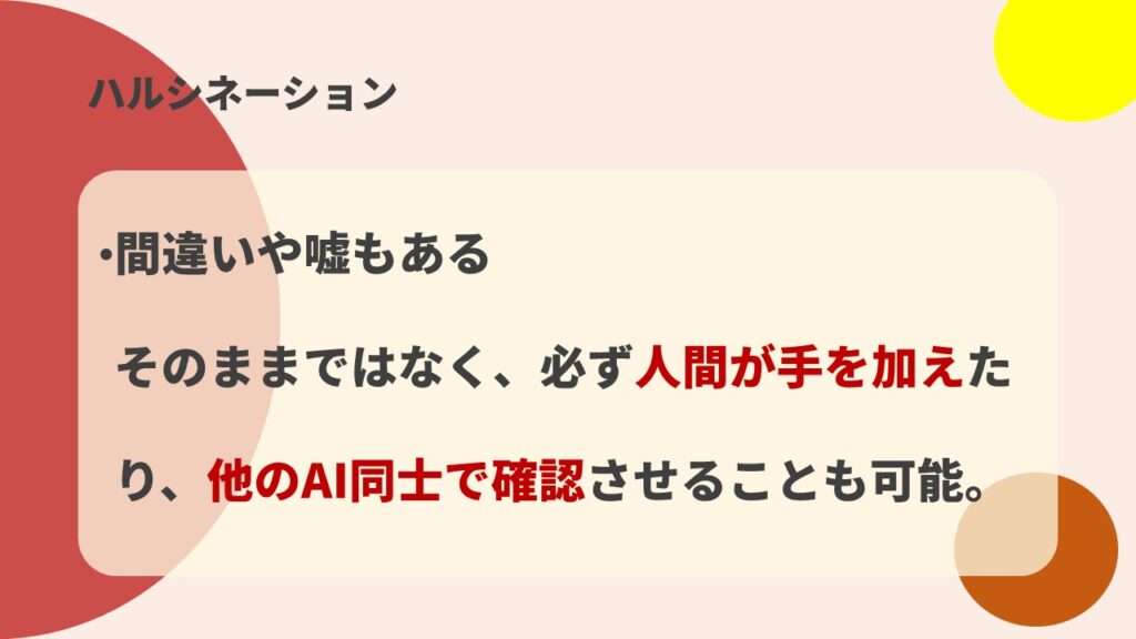 AIは間違いも平気で起こします。特に大切なことは確認が必要です。その場合は、他のAIをたらいまわすことでも確認することができます。