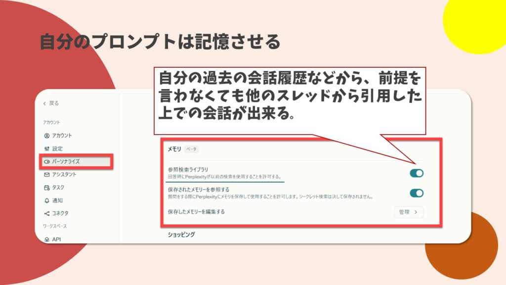 自分のアカウント内の他のチャット(過去の会話)を記憶させておくことで今後のちゃっとがスムーズで各段に使いやすくなることでしょう。
