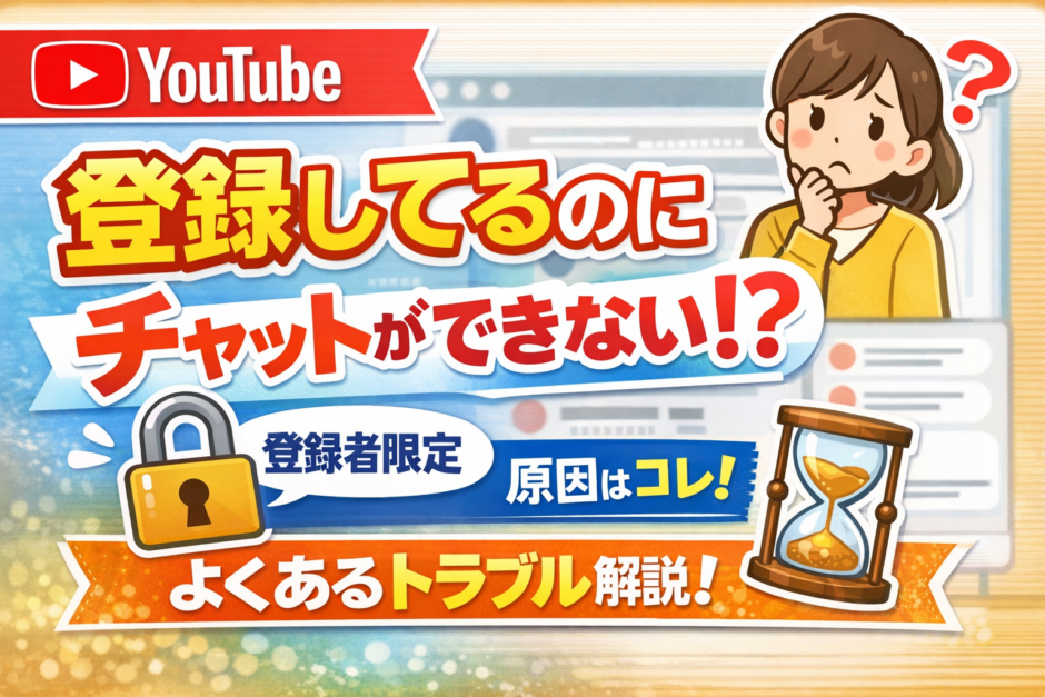 中でも、チャンネルを登録してくれている人だけがチャットが出来るといった設定もあります。登録しているのにもかかわらずできないといったときチャンネル登録者限定チャットなのに書き込めない場合、主な原因は次のあたりが多いです。