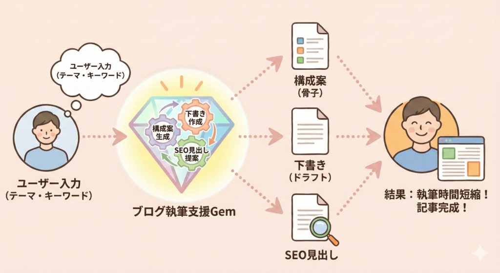 - 使う場面:ブログ記事を早く書きたいとき、構成を整えたいときに便利です。