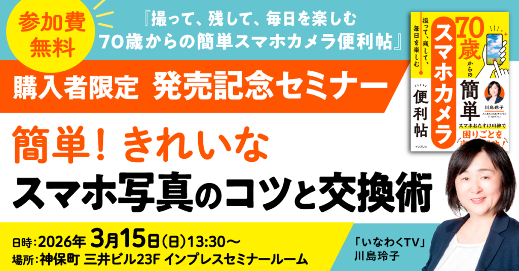 🍀待望の新刊発売のご案内【撮って、残して、毎日を楽しむ 70歳からの簡単スマホカメラ使いこなし帖】予約スタートしました!いなわくTVより、推しの1冊です!